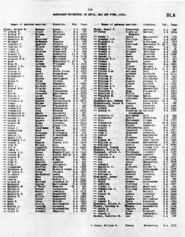 Ibid. Graham BLAKEMORERegistered at Cannock on 5 March 1942 Volume 6b Page 797 Mothers Maiden Name GERRY
