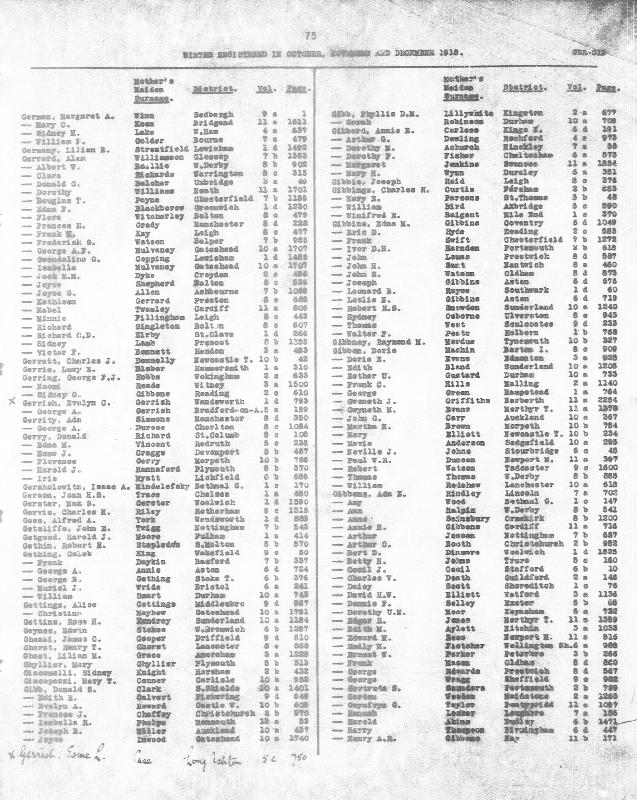 Birth Register Iris GERRYRegistered at Lichfield on 29 November 1918 Volume 6b Page 688 Mothers Maiden Name MYATT