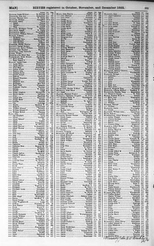 Birth Register Charles Sandom MANSBRIDGERegistered at Winchester on 5 November 1882 Volume 2c Page 106