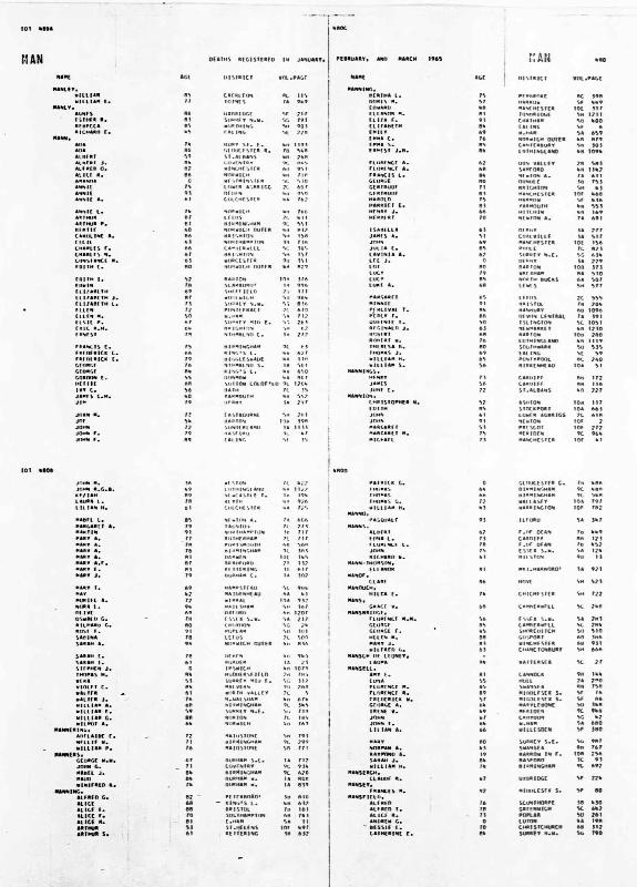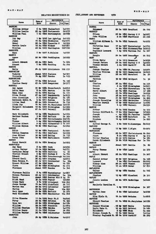 Death Register Charles Henry MANSBRIDGE Born 25 June 1908 : Died 18 July 1970 Registered at Hamstead Volume 5c Page 1577