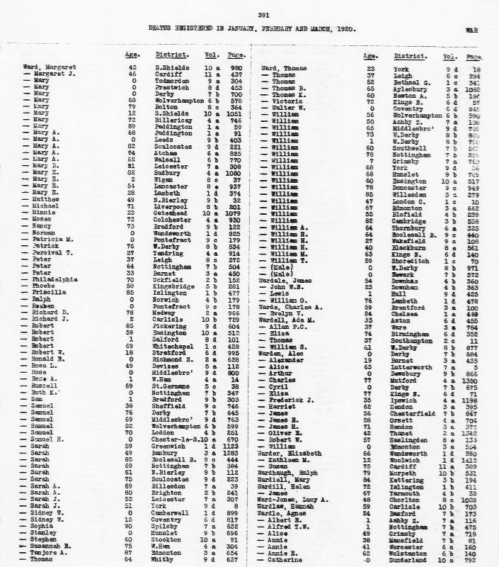 Death Register William WARD Born July 1855 : Died March 1920 Registered at Edmonton Volume 3a Page 662