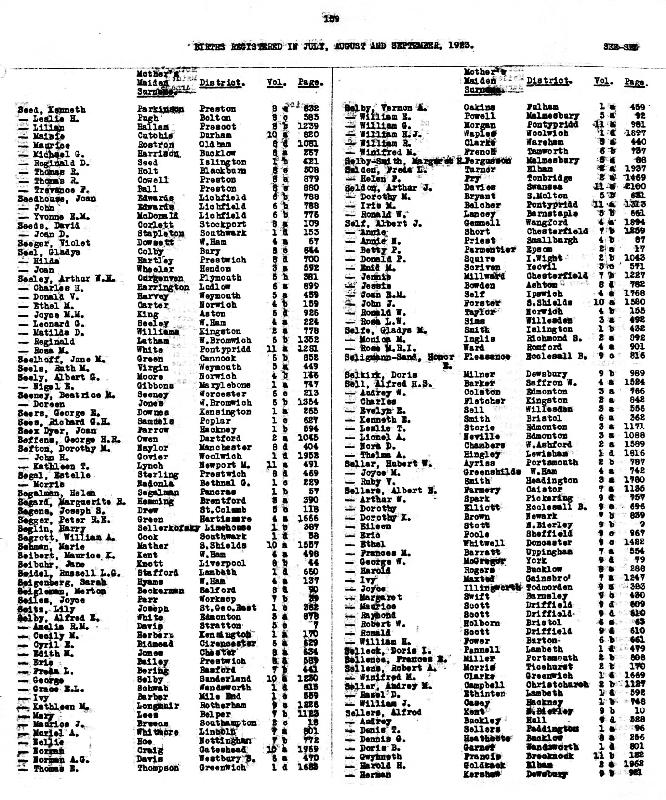 Birth Register Rose M R I SELFERegistered at Romford, Essex on 20 August 1923 Volume 4a Page 901 Mothers Maiden Name WARD