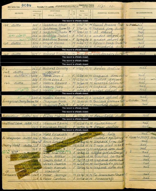 England and Wales Register 29 September 1939 : 'cherry Wood', Cherry Tree Lane Hornchurch London District 191 : Sub District 4 Parish Hornchurch Emuneration District DCBV Class RG 101 Schedule 365/1