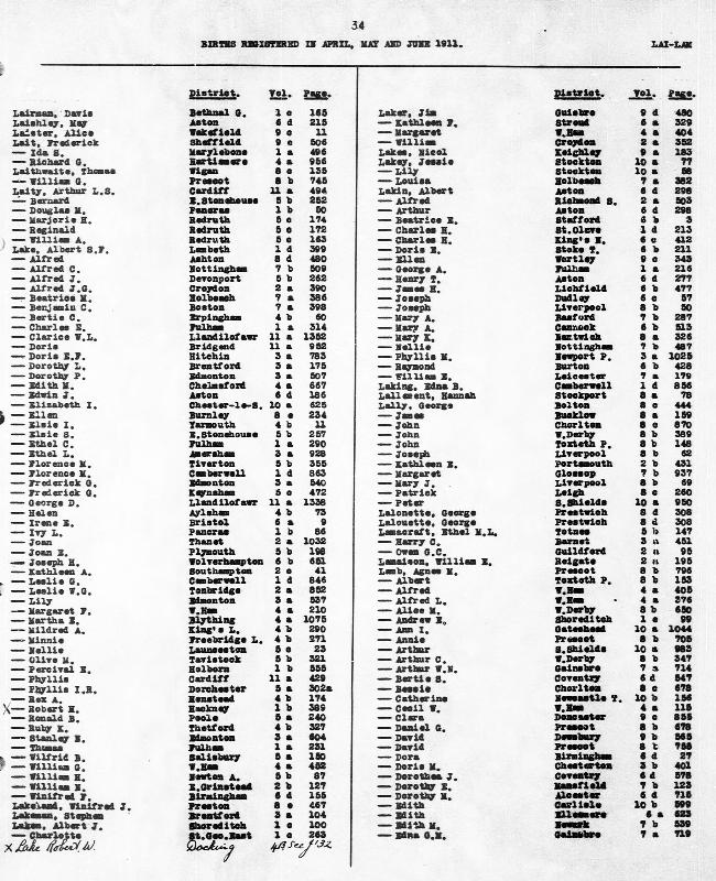 Ibid. James Henry JONESRegistered at Stourbridge on 8 September 1922 Volume 6c Page 83 Mothers Maiden Name LAKIN