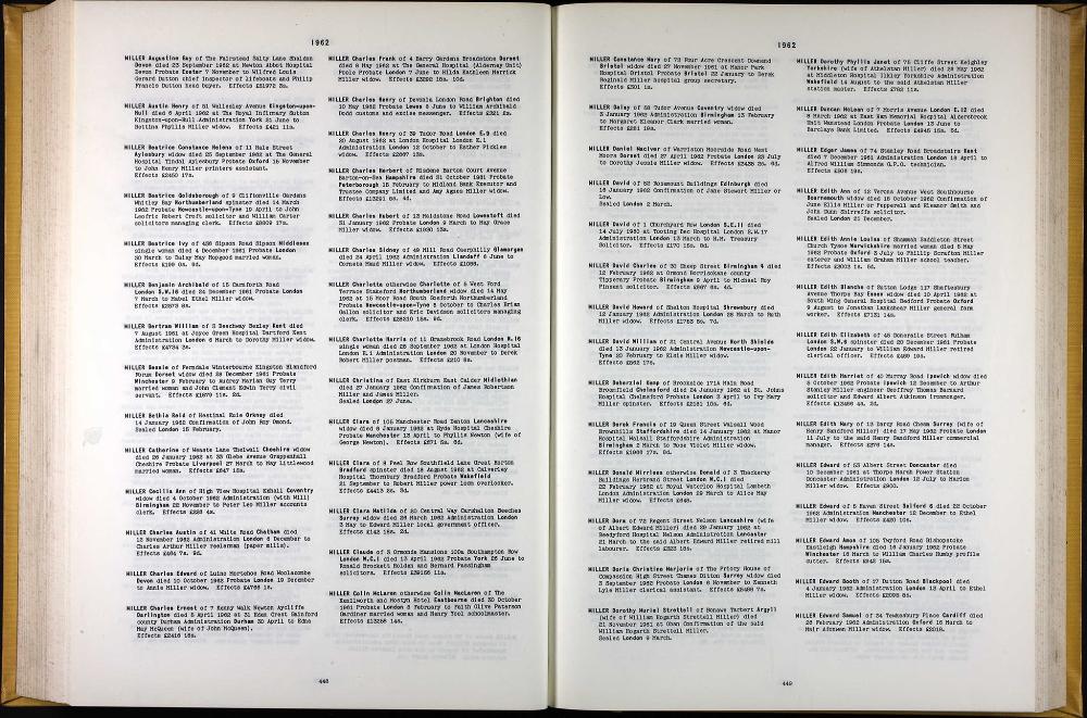 Ibid. 19, Queen Street, Walsall Wood, Staffordshire 14 January 1962 : Source Probate Register 1962 pge 449 Derek Francis MILLER