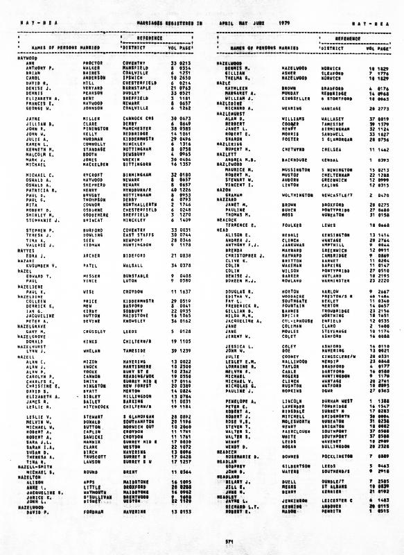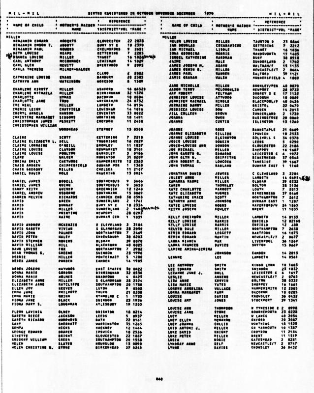 Ibid. David Andrew MILLERRegistered at Stafford on December 1983 Volume 30 Page 0995 Mothers Maiden Name HAYWOOD