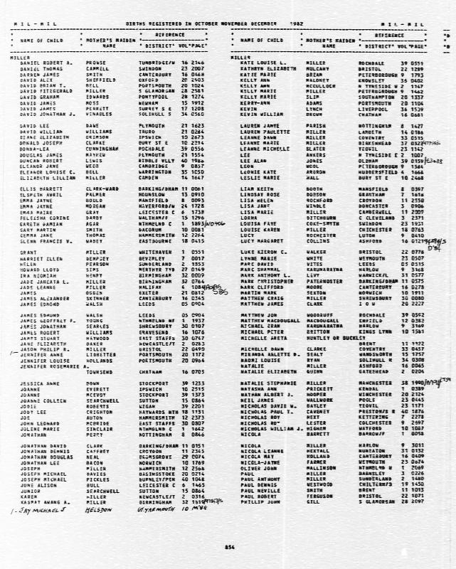 Ibid. James Stuart MILLERRegistered at East Staffs on October 1982 Volume 30 Page 0747 Mothers Maiden Name HAYWOOD