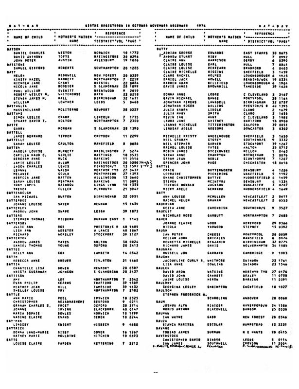 Ibid. Richard James BAUGHRegistered at Wolverhampton on December 1976 Volume 34 Page 1085 Mothers Maiden Name DAVIS
