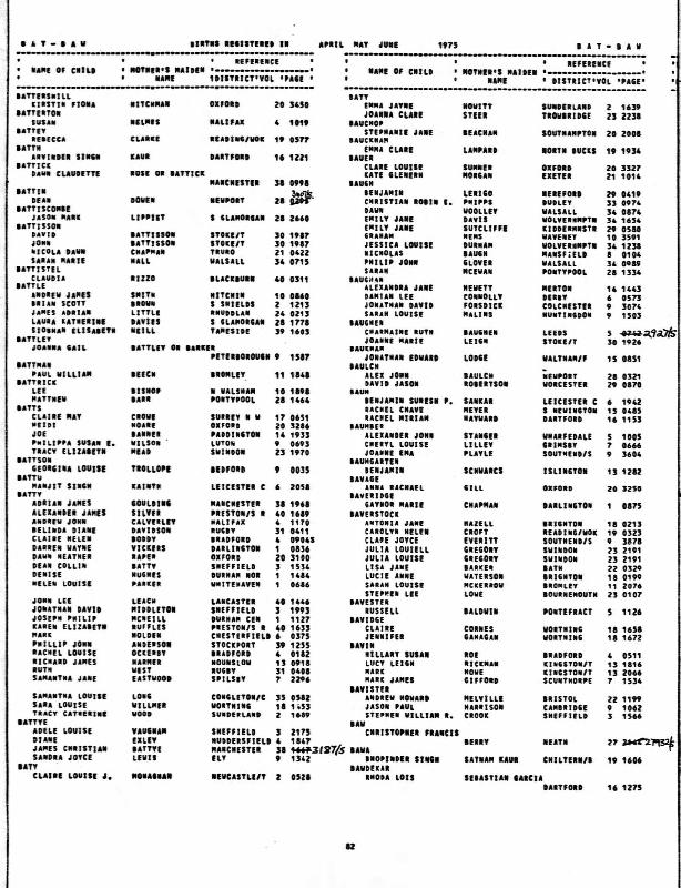 Ibid. Joanne Michelle BAUGHRegistered at Wolverhampton on March 1978 Volume 34 Page 1394 Mothers Maiden Name DAVIS