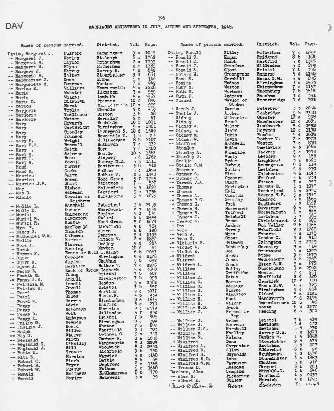Ibid. Pamela Marie WILKINRegistered at Walsall on June 1981 Volume 34 Page 0783 Mothers Maiden Name DAVIS