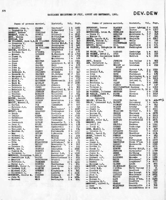 Wedding Register George Peter JONES and Patricia A DEVINE : Registered at Cannock During July 1962 : Volume 9b : Page 369