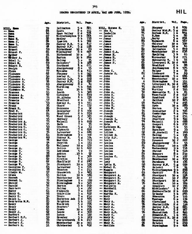Ibid. Louisa LAWRENCE (HILL) Born 1874 : Died 8 April 1950 Registered at Wednesbury Volume 9b Page 714