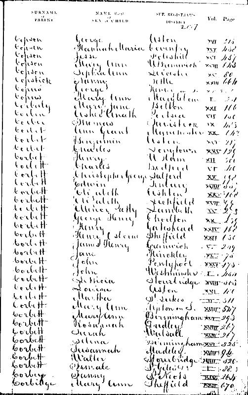 Birth Register John CORBETTRegistered at Pontypool on June 1848 Volume 26 Page 173 Comments Name John COBBETT is recorded on 1881 Census shown as 38 yrs old born in Aberystruth, Monmouthshire. Therefore born 1843 * Name COBBETT is recorded in Wedding Register 16 Oct 1875. * Name COBBETT is recorded as Witness on Marriage Certificate of daughter Dorcas on 5 November 1894. * Name COBBETT is recorded as a witness on Marriage Certificate of daughter Maud on 23 Dec 1901. * Check of BMD Database for John COBBETT born between 1837 (Earliest dates available) and 1847 fails to find a match * Check of BMD Database for John CoRbett born between 1842 and 1848 in Monmouthshire finds 2 possible matching records: * John Stuart Corbett born in Cardiff Jun 1845 (least likely) * John Corbett born Pontypool June 1848 (Best Match)