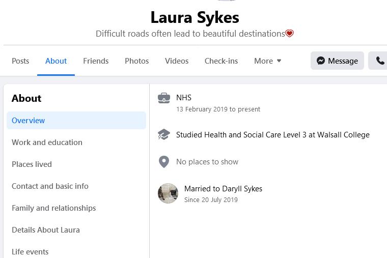 Occupation Laura Jayne BLAKEMORE Born/age 24 December 1996 : Date 14 February 2019 Works for NHS Source Facebook entry by Laura Jayne BLAKEMORE