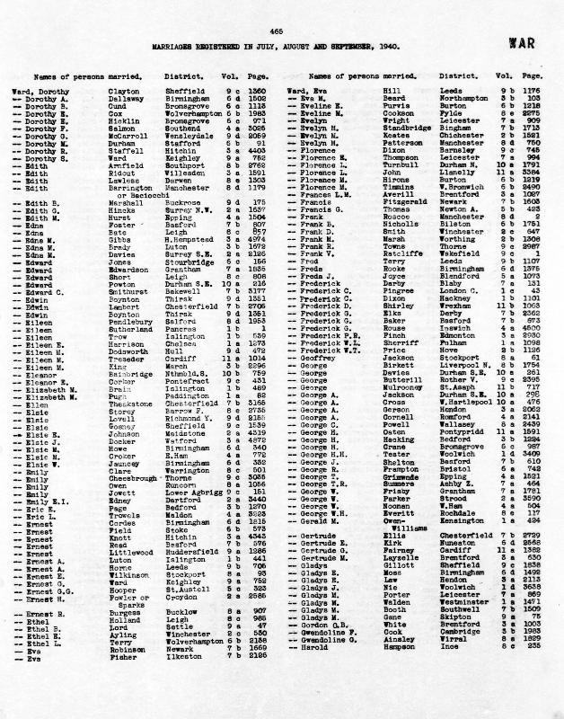 Wedding Register Frederick Charles WARD and Eva Mary DIXON : Registered at Hackney During 6 July 1940 : Volume 1b : Page 1101