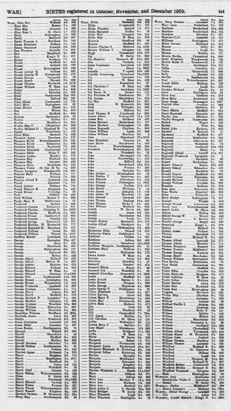 Birth Register Frederick Charles WARDRegistered at Edmonton, London on 18 November 1909 Volume 3a Page 651