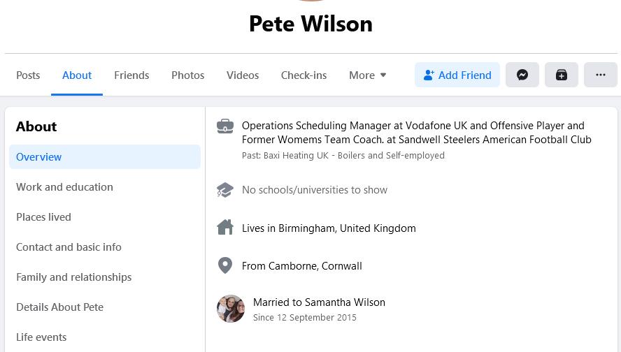 Ibid. : Date August 2012 Offensive Player and Former Womems Team Coach. at Sandwell Steelers American Football Club Source Facebook Entry by Peter William WILSON
