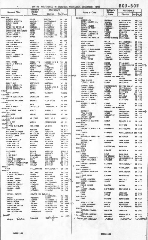 Birth Register Daniel Stephen BOULTONRegistered at Sandwell on 26 December 1986 Volume 33 Page 1189 Mothers Maiden Name BEMBRIDGE