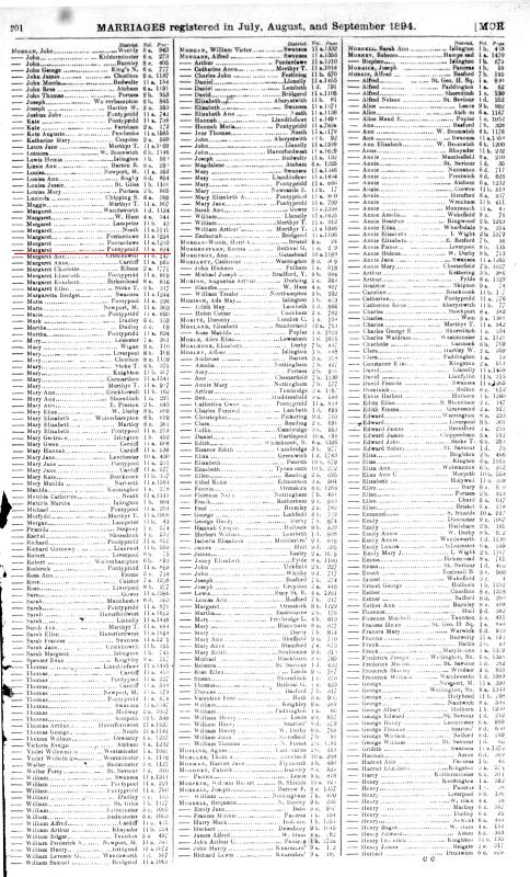 Wedding Register William J GRIFFITHS and Margaret MORGAN : Registered at Pontypridd During September 1894 : Volume 11a : Page 824