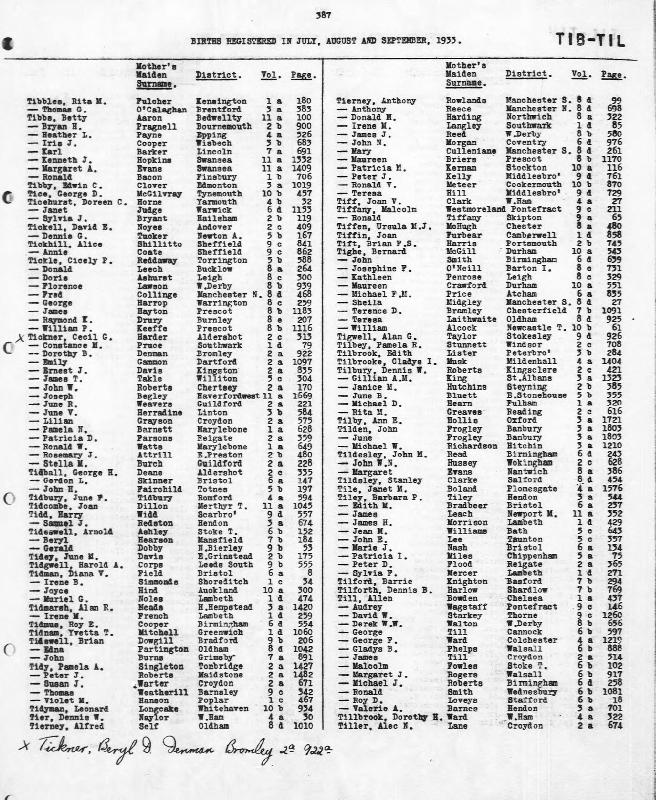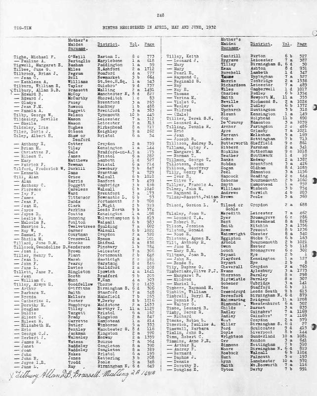 Ibid. Iris V TILLRegistered at Brentford, Middlesex on July 1930 Volume 3a Page 178 Mothers Maiden Name WARD