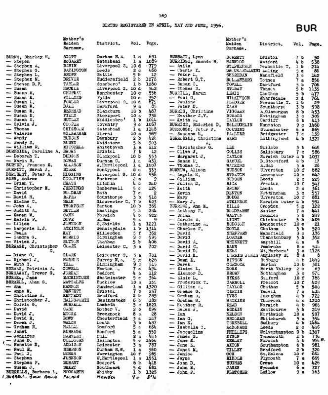 Ibid. Ruth Y BURRAGERegistered at Birmingham on April 1956 Volume 9c Page 515 Mothers Maiden Name TILL