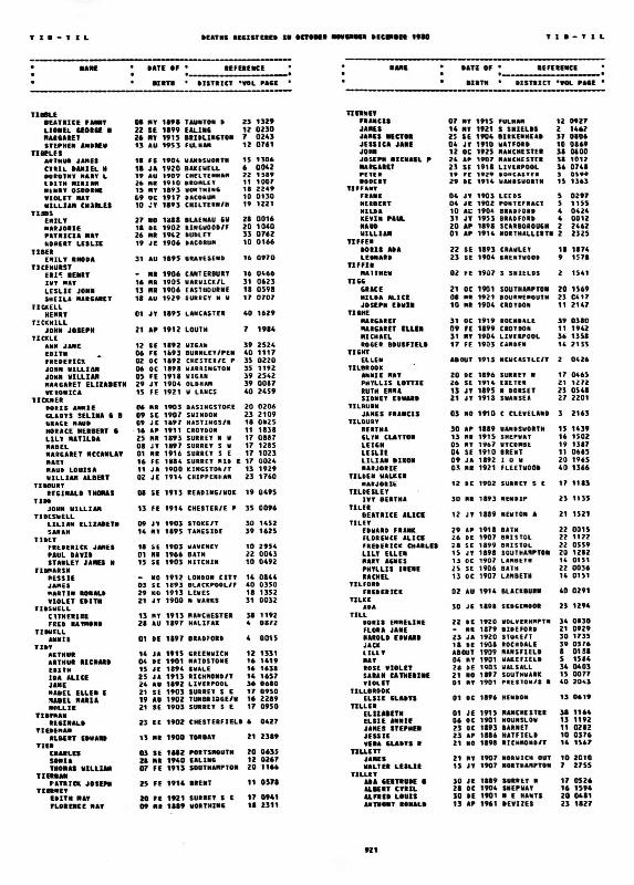 Death Register Rose Violet WARD (TILL) Born 28 December 1903 : Died 28 December 1980 Registered at Walsall Volume 34 Page 0403