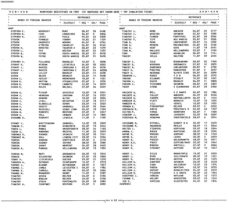 Wedding Register Paul A ROLFE and Susan Elaine Hunt : Registered at Walsall During July 1987 : Volume 34 : Page 437 Only 1 image available on BMD (25May2021)