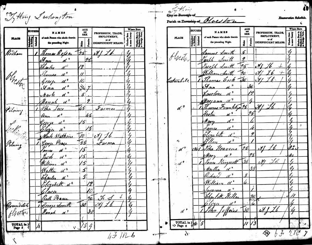 England Census 6 June 1841 : Pilming Olveston Gloucestershire Parish Olveston Emuneration District 7 Class HO107 Piece 361 Book 12 Folio 39 Page Number 5 Line 13 GSU Roll 288773 5