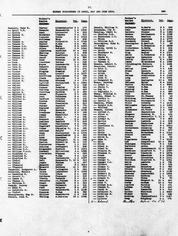 Birth Register Ethel A BENSONRegistered at Aston on April 1916 Volume 6d Page 1034