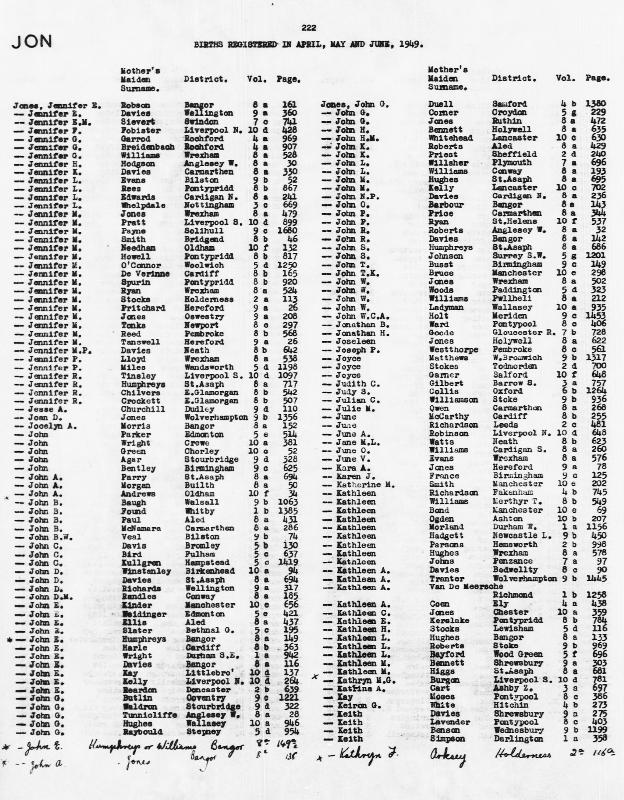 Ibid. Keith JONESRegistered at Wednesbury on 10 May 1949 Volume 8b Page 1188 Mothers Maiden Name BENSON