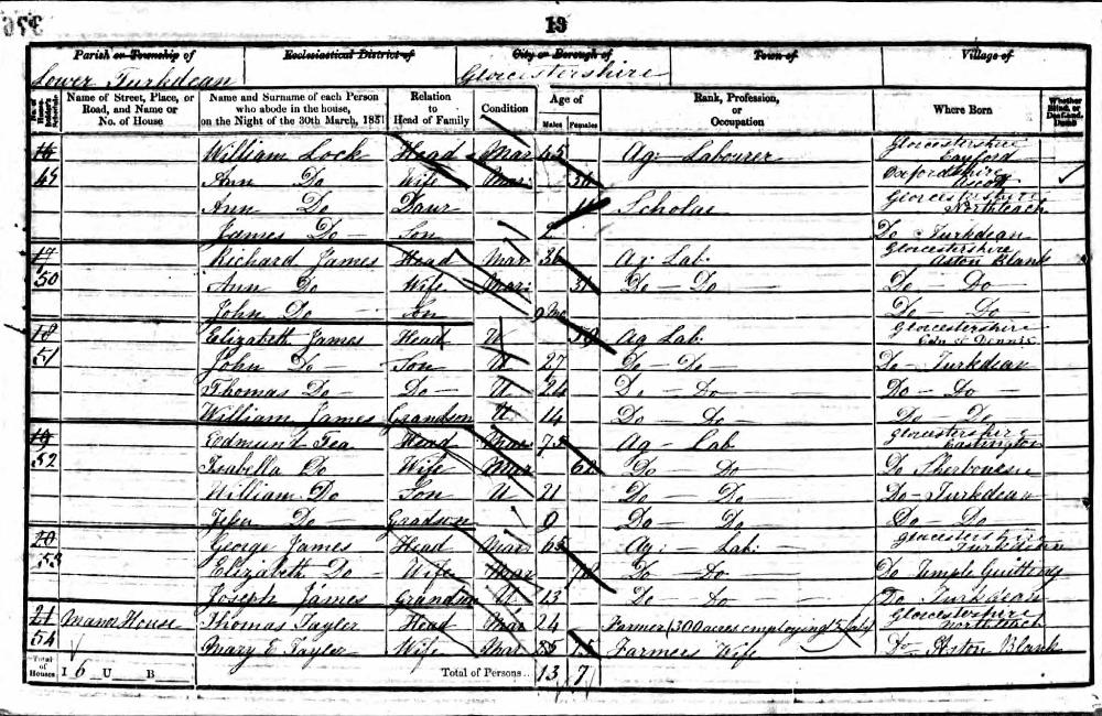 Ibid. : 50, Lower Turkdean Cold Aston Gloucestershire District Northleach : Sub District Bibury Parish Turkdean Emuneration District 16 Piece 1969 Folio 376 Schedule 50 Page Number 13 13
