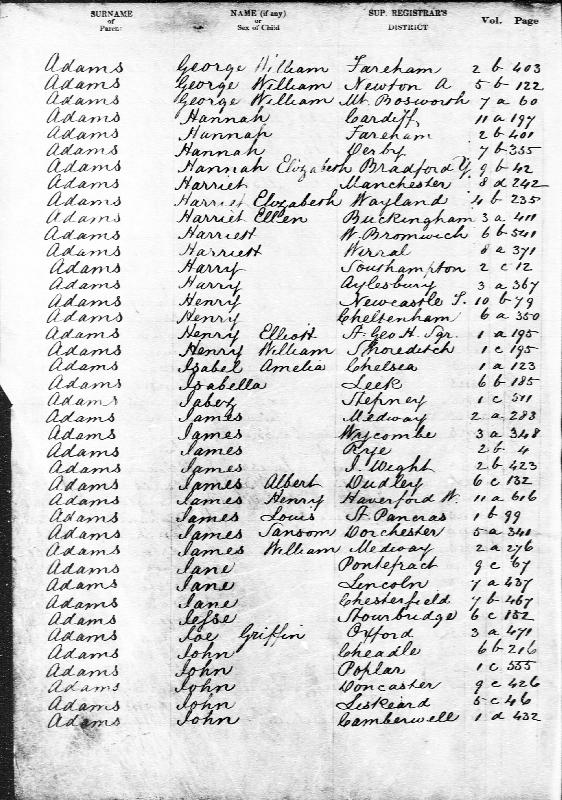 Birth Register Hannah ADAMSRegistered at Derby on 1855 Volume 7b Page 355