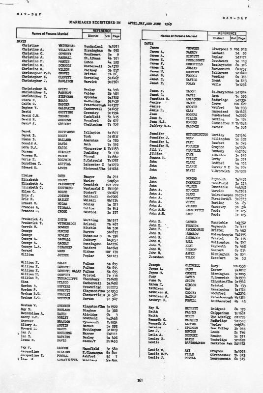 Ibid. Sarah Elizabeth BAUGHRegistered at Wolverhampton on December 1972 Volume 9b Page 3168 Mothers Maiden Name DAVIS Comments Twin Sister