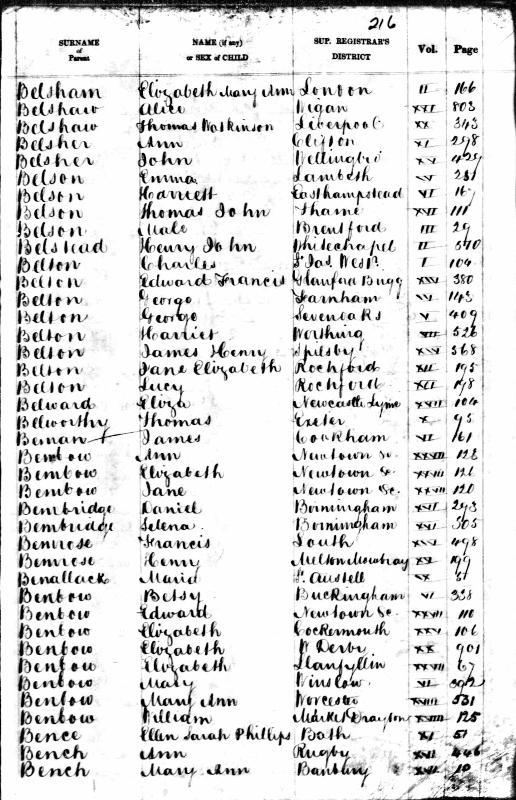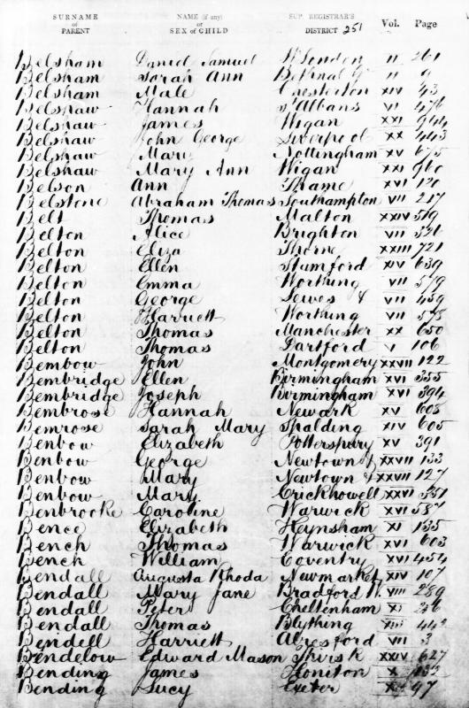 Birth Register Ellen BEMBRIDGERegistered at Birmingham on June 1849 Volume 16 Page 355