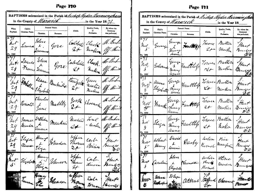 Isaac George Bembridge and Elizabeth Higgins; Birmingham, Warwickshire, England, United Kingdom11