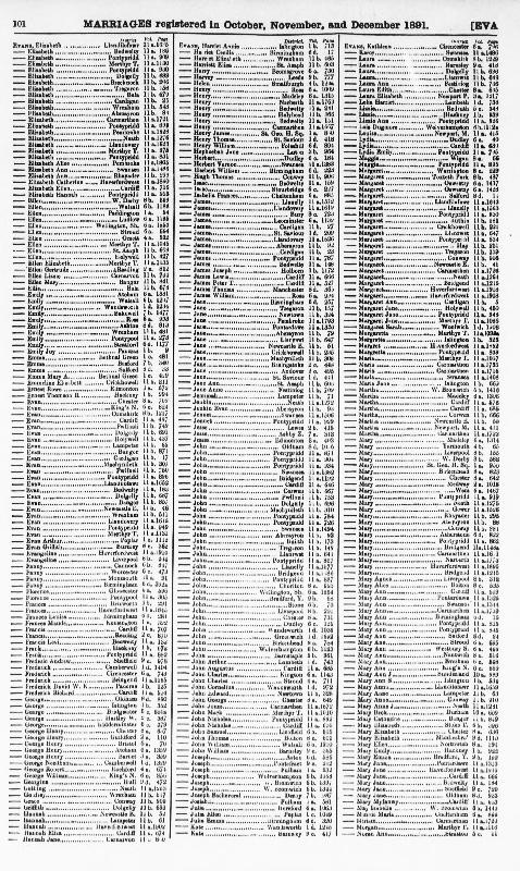 Wedding Register Gilbert G THOMAS and Elizabeth Hannah EVANS : Registered at Pontypridd During December 1891 : Volume 11a : Page 953