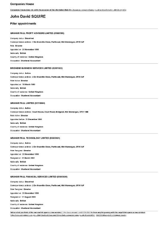 Attachments SQUIRE John David Born/age April 1951: on/during 19 March 1993 Occupation Chartered Accountant Source Companies House
