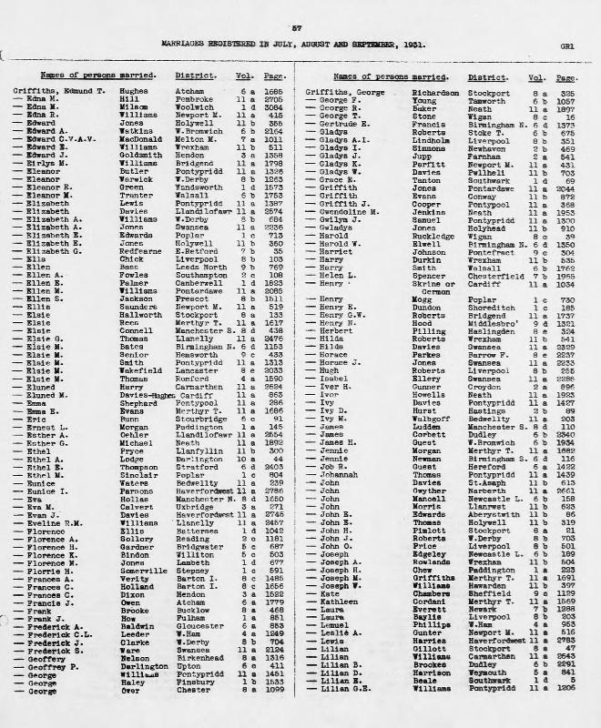 Wedding Register Thomas David WATERS and Eunice GRIFFITHS : Registered at Bedwellty During September 1931 : Volume 11a : Page 239