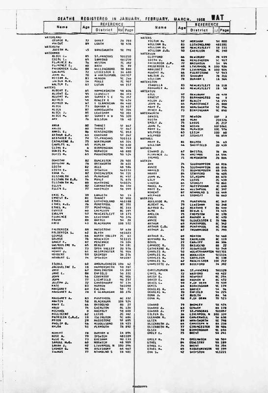 Birth Register Spencer WATERSRegistered at Newport, Monmouthshire on 28 July 1933 Volume 11a Page 494 Mothers Maiden Name GRIFFITHS