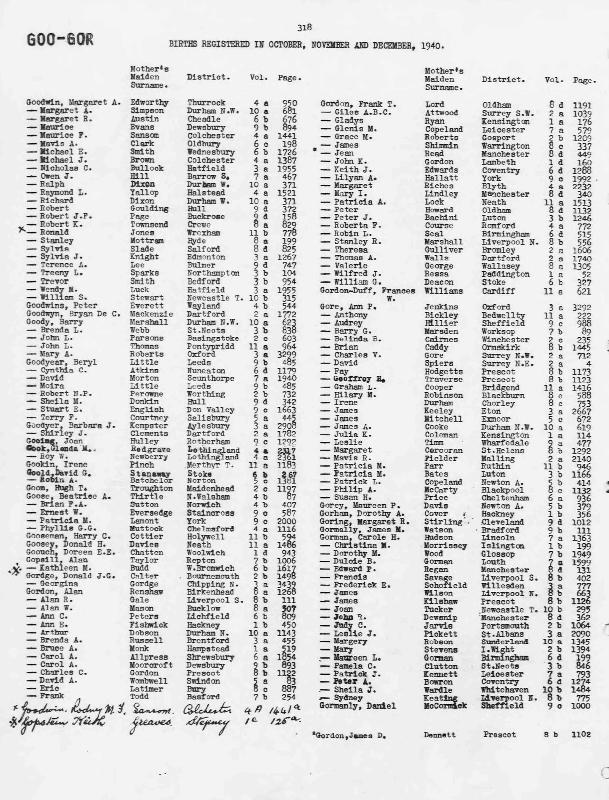 Birth Register Kathleen M GOPSILLRegistered at West Bromwich on October 1940 Volume 6b Page 1617 Mothers Maiden Name BUDD