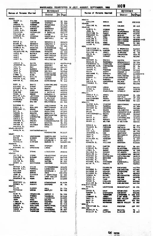 Wedding Register Frank Kenneth JONES and Gillian J HOWL : Registered at Aldridge During 3 September 1968 : Volume 9b : Page 58
