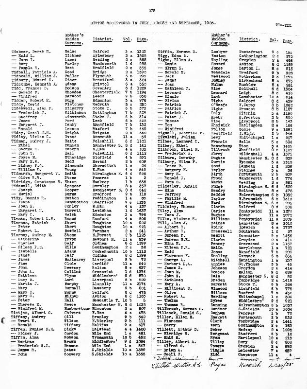 Birth Register Arthur Charles TILLRegistered at Southwark on 13 July 1925 Volume 1d Page 27 Mothers Maiden Name CRESSWELL