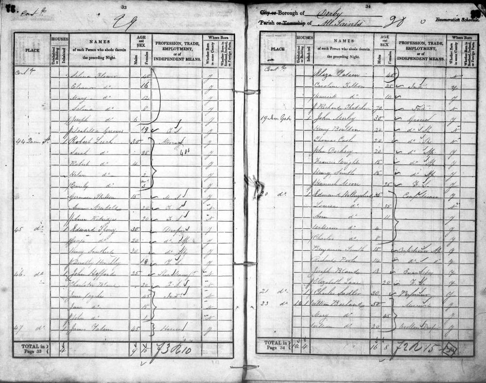 England Census 6 June 1841 : 20, Ingate Derby Derbyshire Parish All Saints Emuneration District 2 Class HO107 Piece 199 Book 6 Folio 37 Page Number 20 Line 17 GSU Roll 241300 20