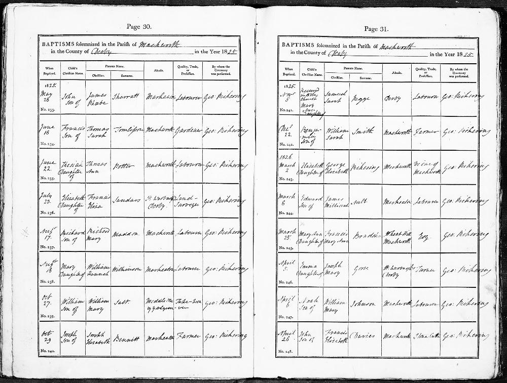 Baptised: Benjamin SMITH Born 22 December 1825 of Mackworth, Derbyshire Was Baptised on 22 December 1825 at Mackworth, Derbyshire Father William SMITH a Farmer Mother Sarah Source: Derbyshire, England, Church of England Baptisms, 1813-1916 Page 31 Entry no. 242