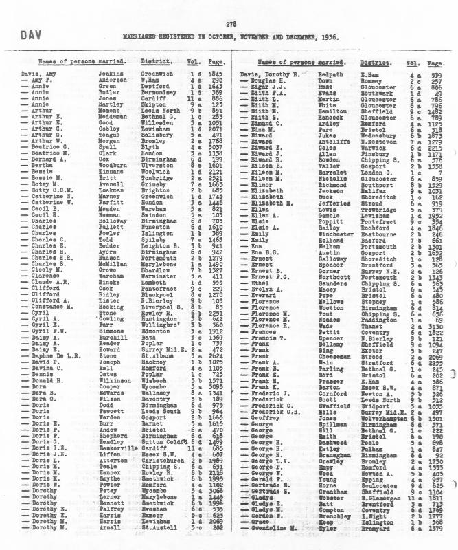 Ibid. Mary DAVISRegistered at Wednesbury on 13 May 1938 Volume 6b Page 1205 Mothers Maiden Name JUKES