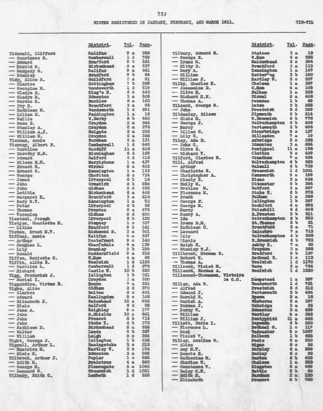 Birth Register George Francis TILLRegistered at Islington on 3 January 1911 Volume 1b Page 247