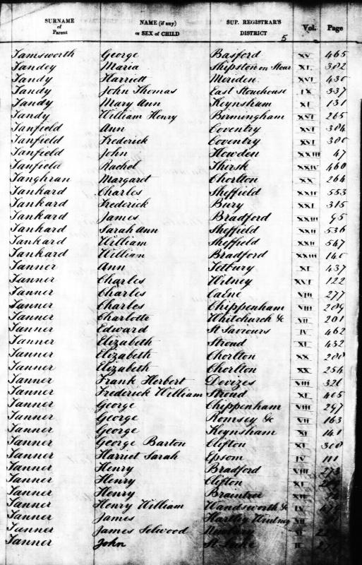 Birth Register William Henry TANDYRegistered at Birmingham on 28 May 1839 Volume 16 Page 265
