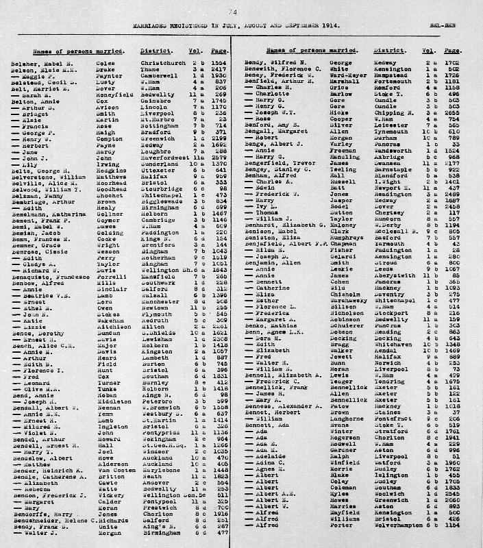 Wedding Register John HEALY and Edith Mary BEMBRIDGE : Registered at Birmingham During September 1914 : Volume 6d : Page 699