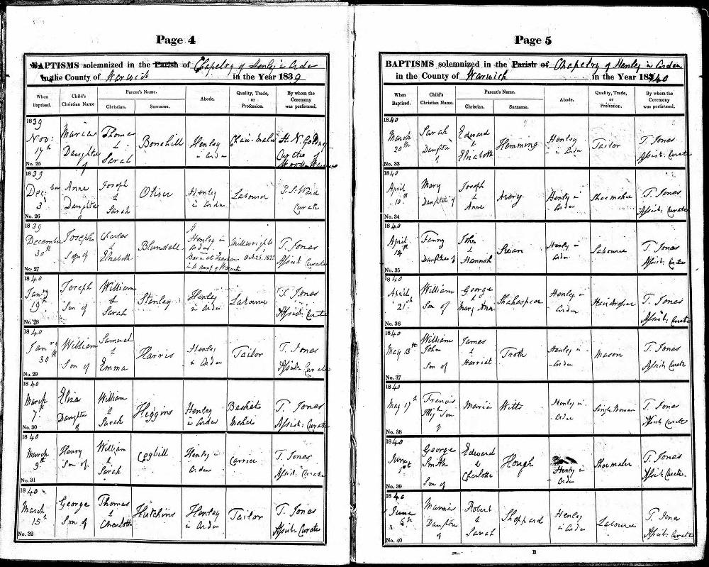 Baptised: Elizabeth HIGGINS of Henley in Arden, Warwickshire Was Baptised on 7 March 1840 at Chapelry Henley in Arden, Warwickshire Father William Higgins a Basket Maker Mother Sarah HIGGINS Source: Warwickshire County Record Office; Warwick, England; Warwickshire Page 4 Entry no. 30
