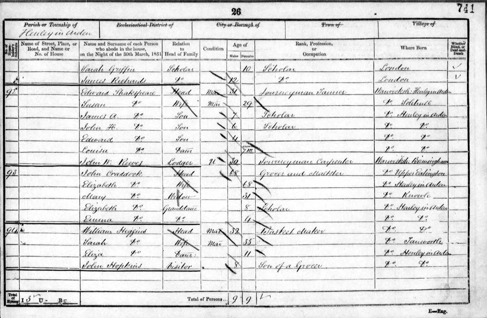 England Census 30 March 1851 : Lunatic Asylum Henley In Arden Warwickshire Class HO107 Piece 2074 Folio 741 Page Number 26 GSU Roll 87342-87343 26